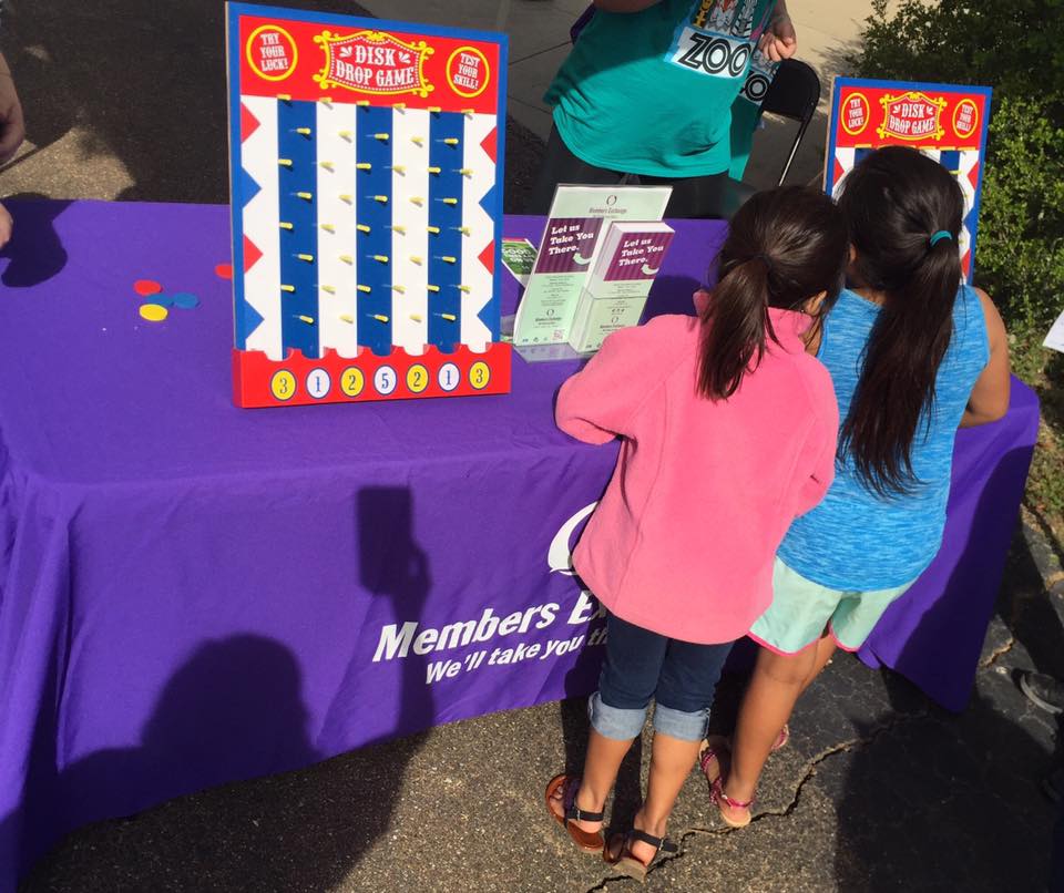 Members Exchange gave away animal headbands, coin bags, plush animals, sun glasses and coloring sheets. Guests played Plinko to win a prize. MECU dino mascot, Save-A-Saurus Rex, took pictures with guests.